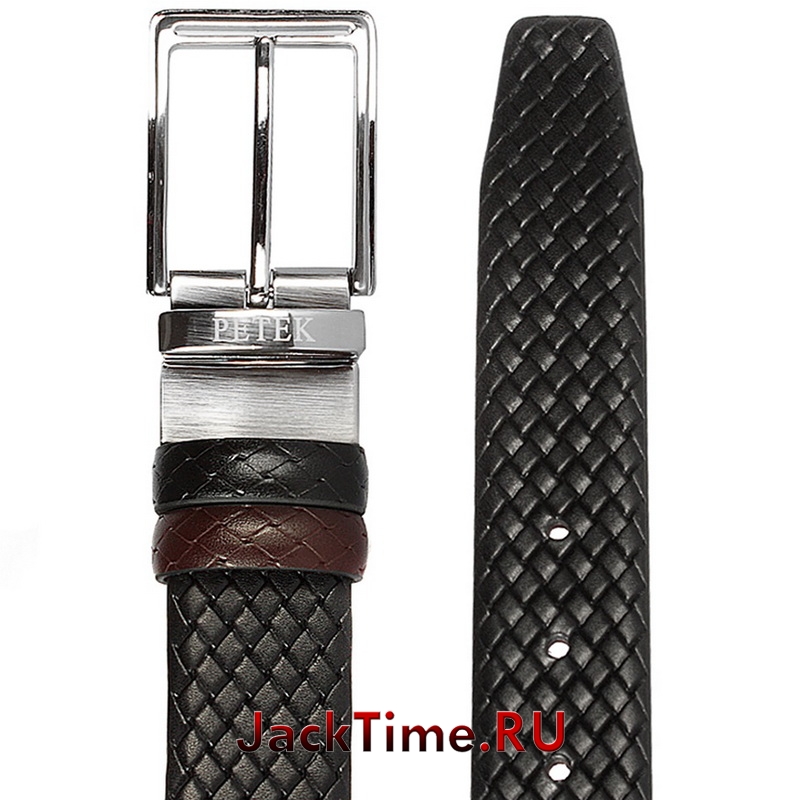 Мужской двухсторонний ремень PETEK с поворотной пряжкой. Внешняя сторона ремня одного цвета (или фактуры), а внутренняя — другого. При повороте пряжки внешняя сторона ремня становится внутренней, а внутренняя — внешней, тем самым происходит смена цвета (или фактуры поверхности) ремня.