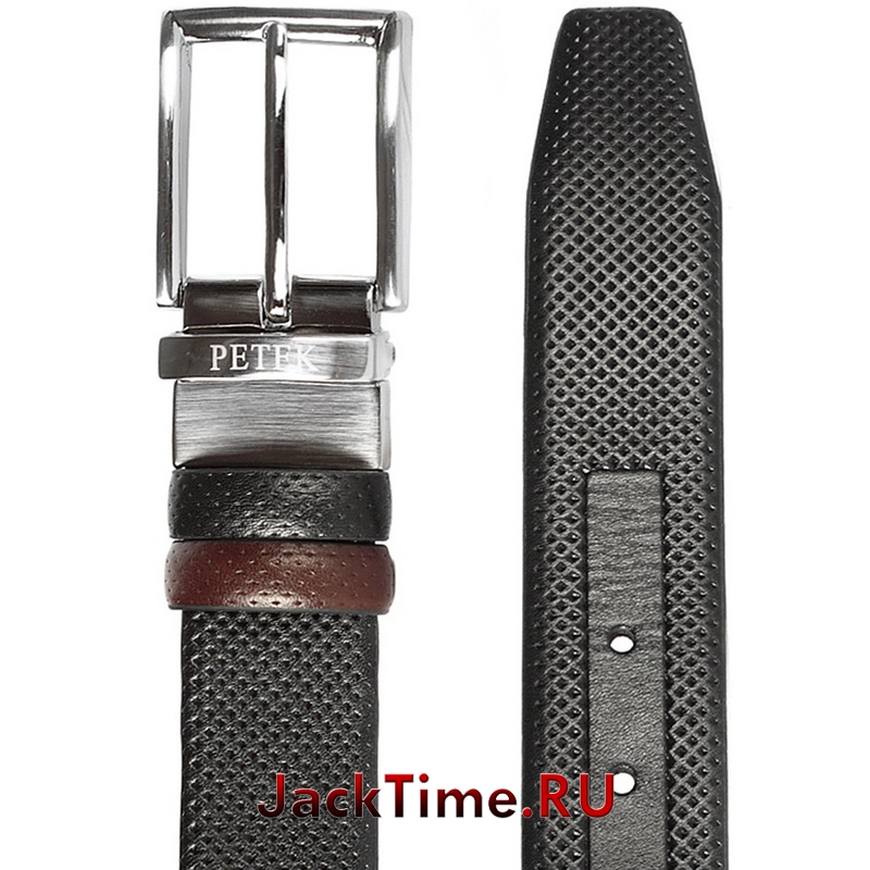 Мужской двухсторонний ремень PETEK с поворотной пряжкой. Внешняя сторона ремня одного цвета (или фактуры), а внутренняя — другого. При повороте пряжки внешняя сторона ремня становится внутренней, а внутренняя — внешней, тем самым происходит смена цвета (или фактуры поверхности) ремня.